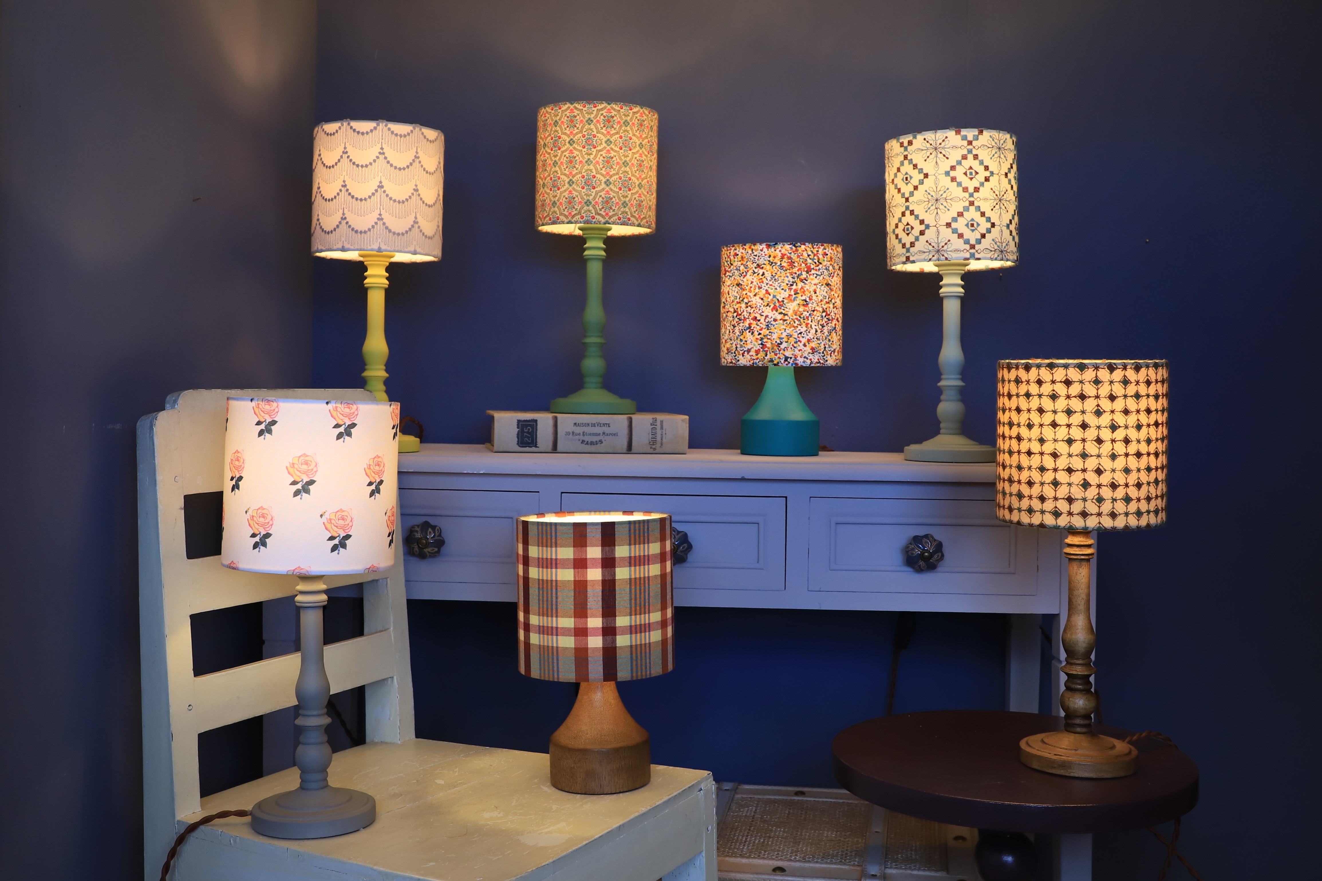 灯りをとるためだけに使う照明器具でなく、楽しい色合いと生地の柄で、点いていない時も楽しく眺めていたくなるようなランプを作りたいという思いから生まれました。環境に配慮したエコフレンドリーな素材を使用し、生活に彩りを加えることができるようにデザインされています。