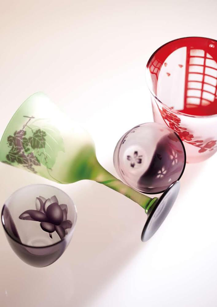 サンドブラスト技法によるガラス装飾を専門に、約20年にわたり制作を続けています。ガラスの表面を彫刻するように削り出す「彫刻的サンドブラスト」を軸に、ぼかし彫りや段彫りなど高度な技法を用い、やわらかな光と透明感を大切にした作品づくりを行っています。