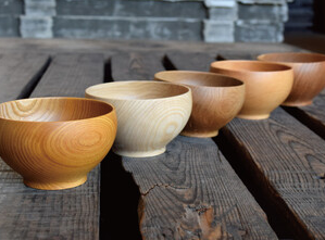 一点ずつ手作りされているこのお椀は、従来の漆塗装の木製汁椀に対する重苦しいイメージを一新しました。「より身近に感じ、使ってもらう。」というコンセプトのもと、使いやすく手に取りやすい器が生まれました。天然木を使用し、漆塗装による美しさと実用性が見事に融合しています。