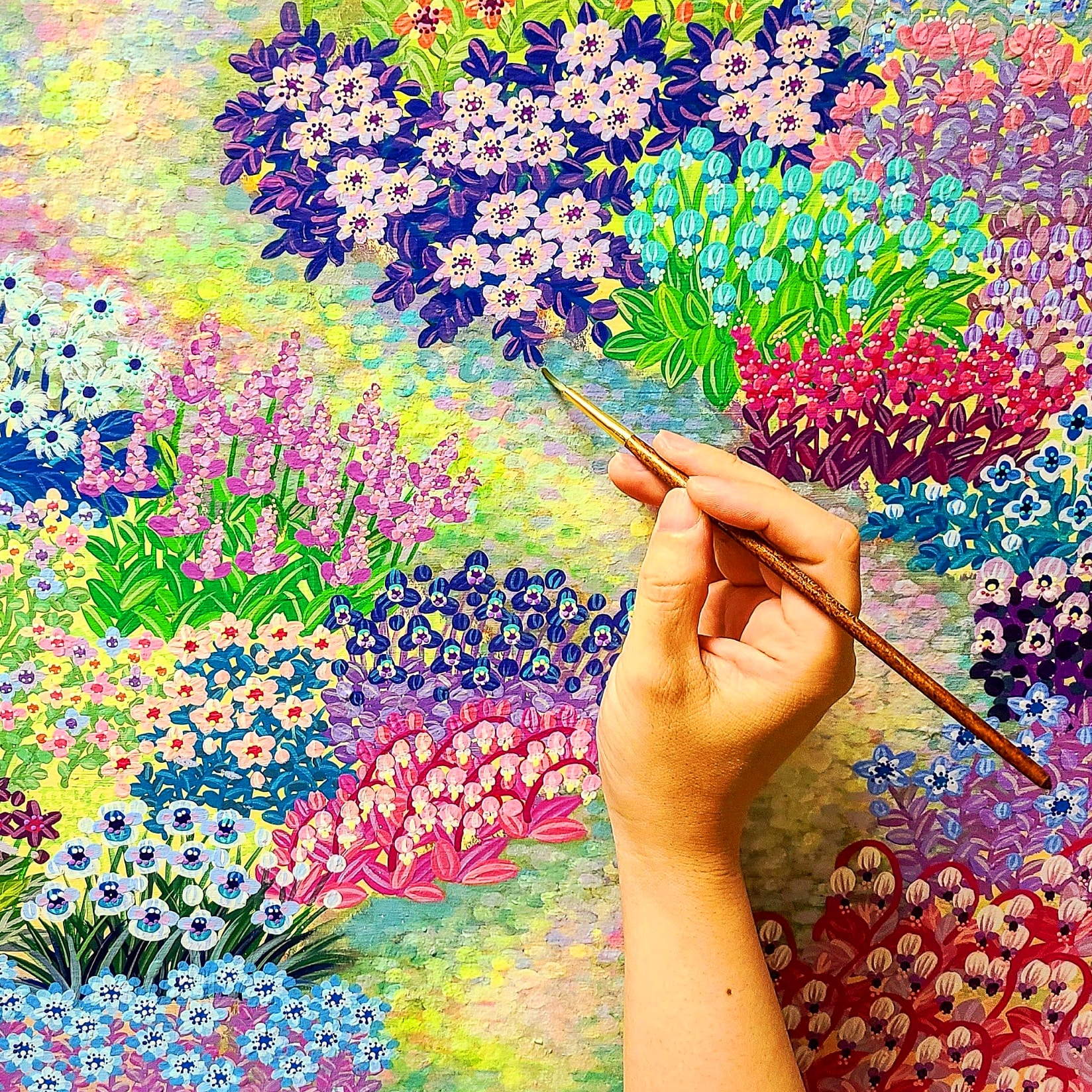 北海道在住にじいろ絵描き てじまともこです。たくさんの色を使って花や木、自然をモチーフにしたアート作品を作っています。下書きや設計図はつくらず自由に筆を動かして作るアートで迎えてくれた方に素敵な時間をすごしてもらえますように!