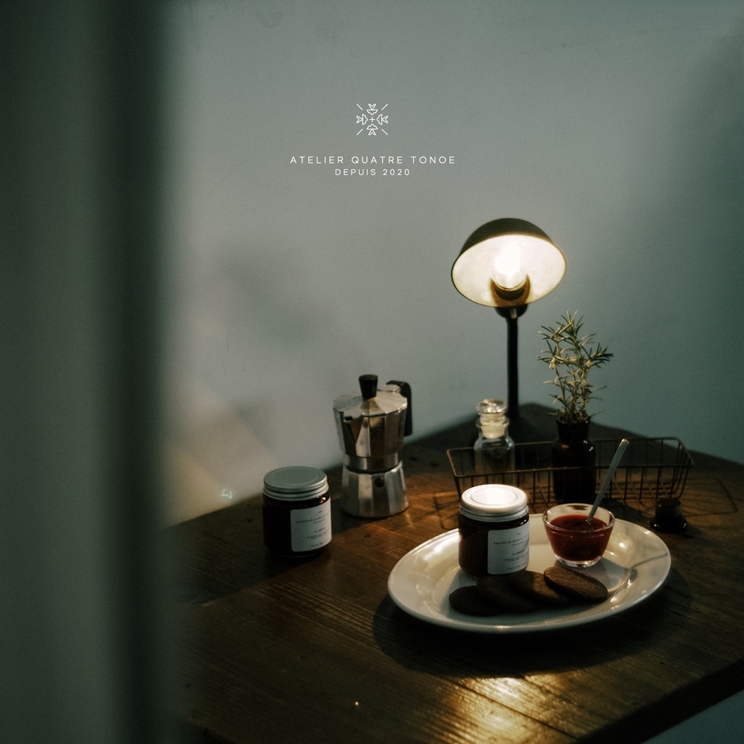 atelier quatre tonoe は、旬の果物やドライフルーツ、ナッツにスパイスやハーブの香りを重ねた焼菓子とシロップの工房です。薬膳や発酵の知恵を生かし、からだにやさしく、日々の暮らしにそっと寄り添う味わいを、ご注文をいただいてからコツコツと、ひとつひとつ手づくりしています。