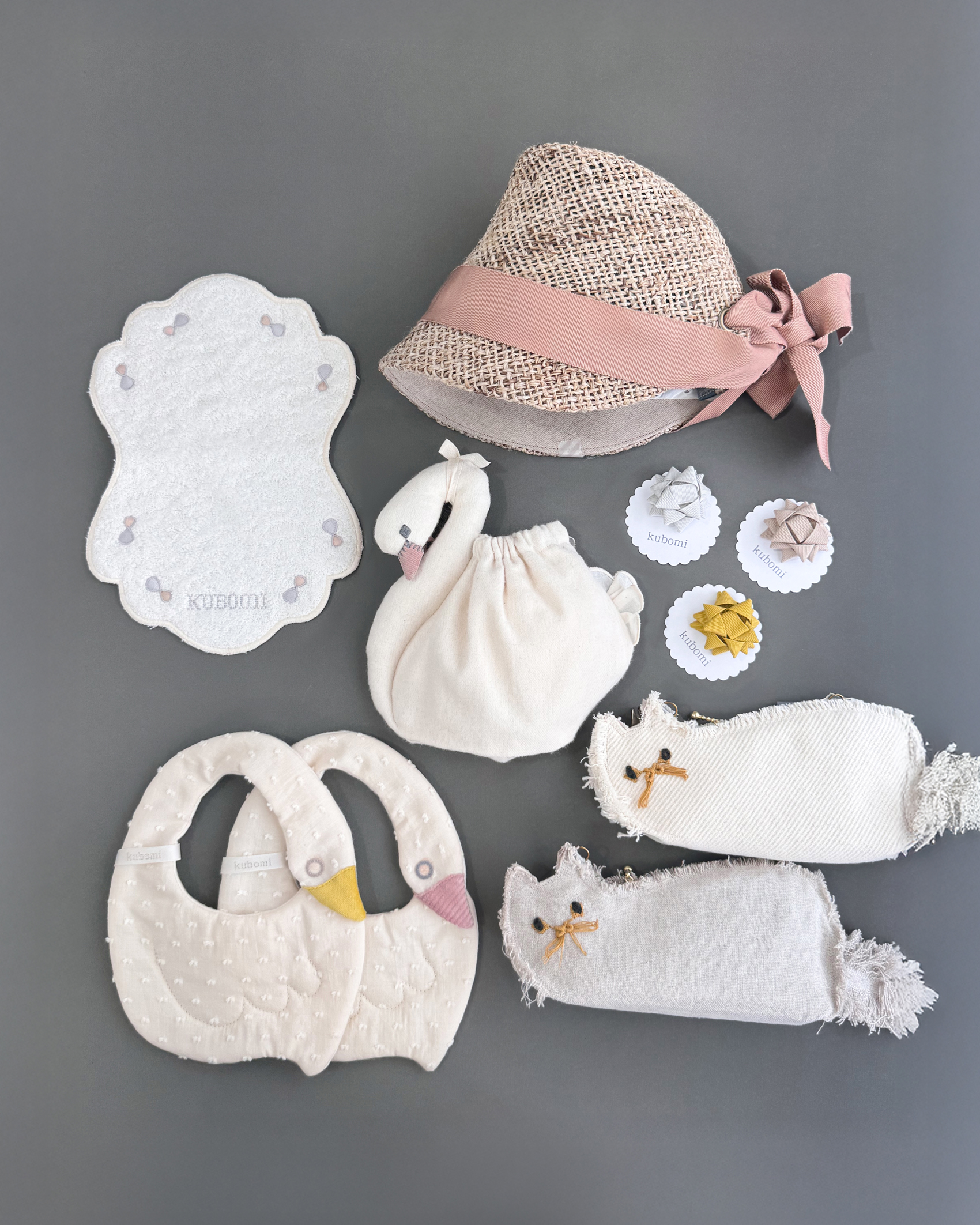 帽子・ベビーグッズ・ポーチなどファッション小物を中心に、ベビーから大人まで、年齢を問わず楽しんでいただけるアイテムを提案しています。kubomi独自の製作方法で、職人ママたちの協力のもと、地域メイドで一点一点手作りしているブランドです。